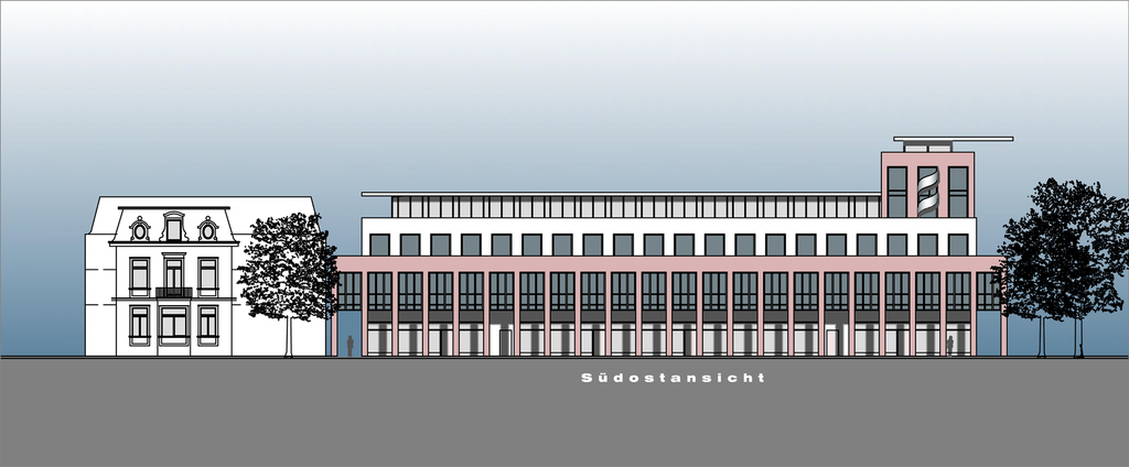 Erdgeschoss Verkaufsflächen 1. Obergeschoss Büros / Praxen 2. + 3. Obergeschoss Maisonettewohnungen mit Dachgarten 1. + 2. Untergeschoss Tiefgarage, Lager, Technik